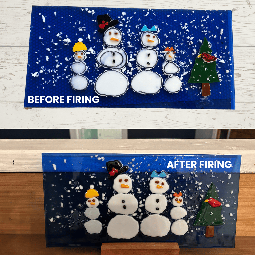 Do you remember when I told you how much fun I had at that fused glass art class? Well… yesterday I finally got to pick up my finished piece, and as promised, here are the before-and-after pics.